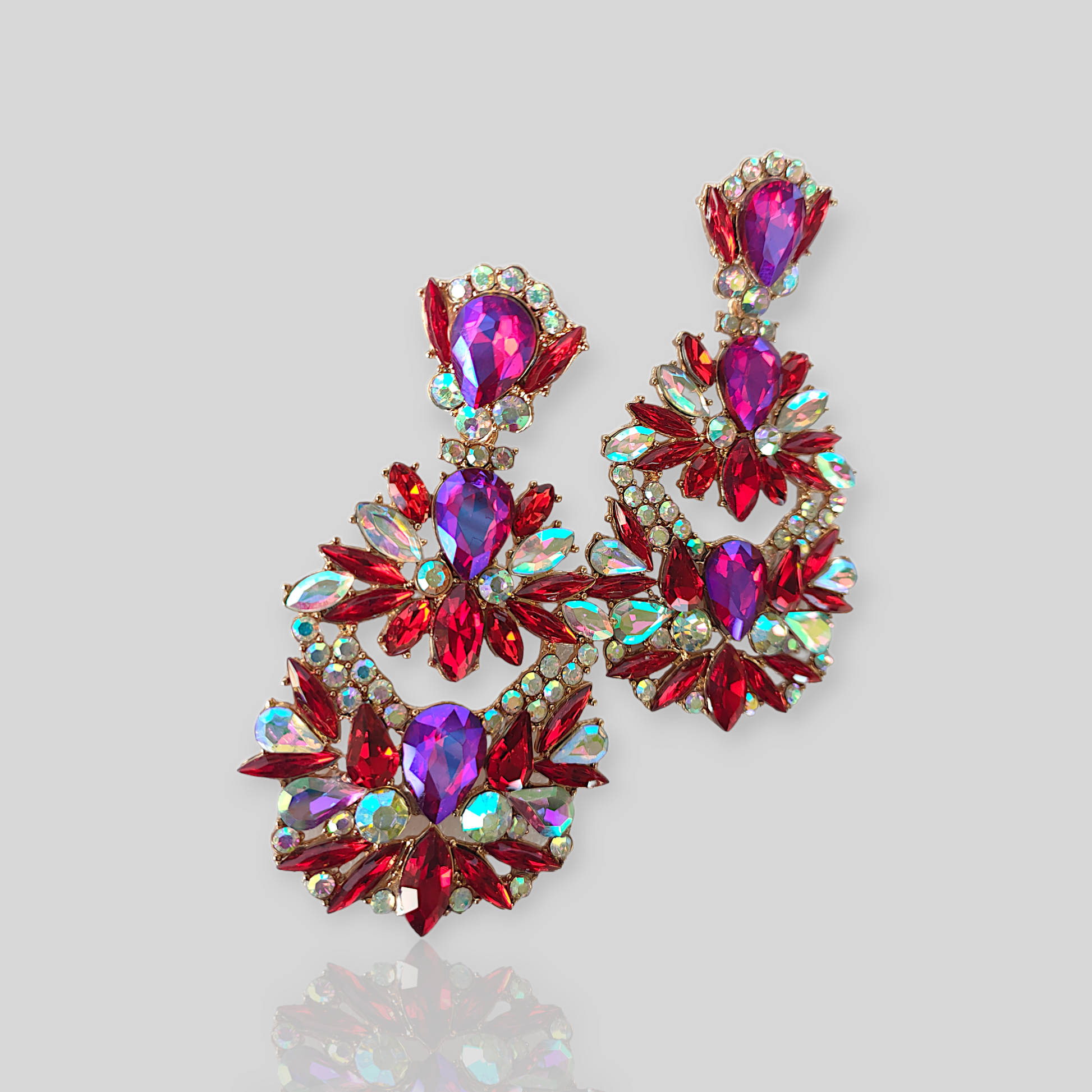 GLACIER Red Chandelier Statement Earrings