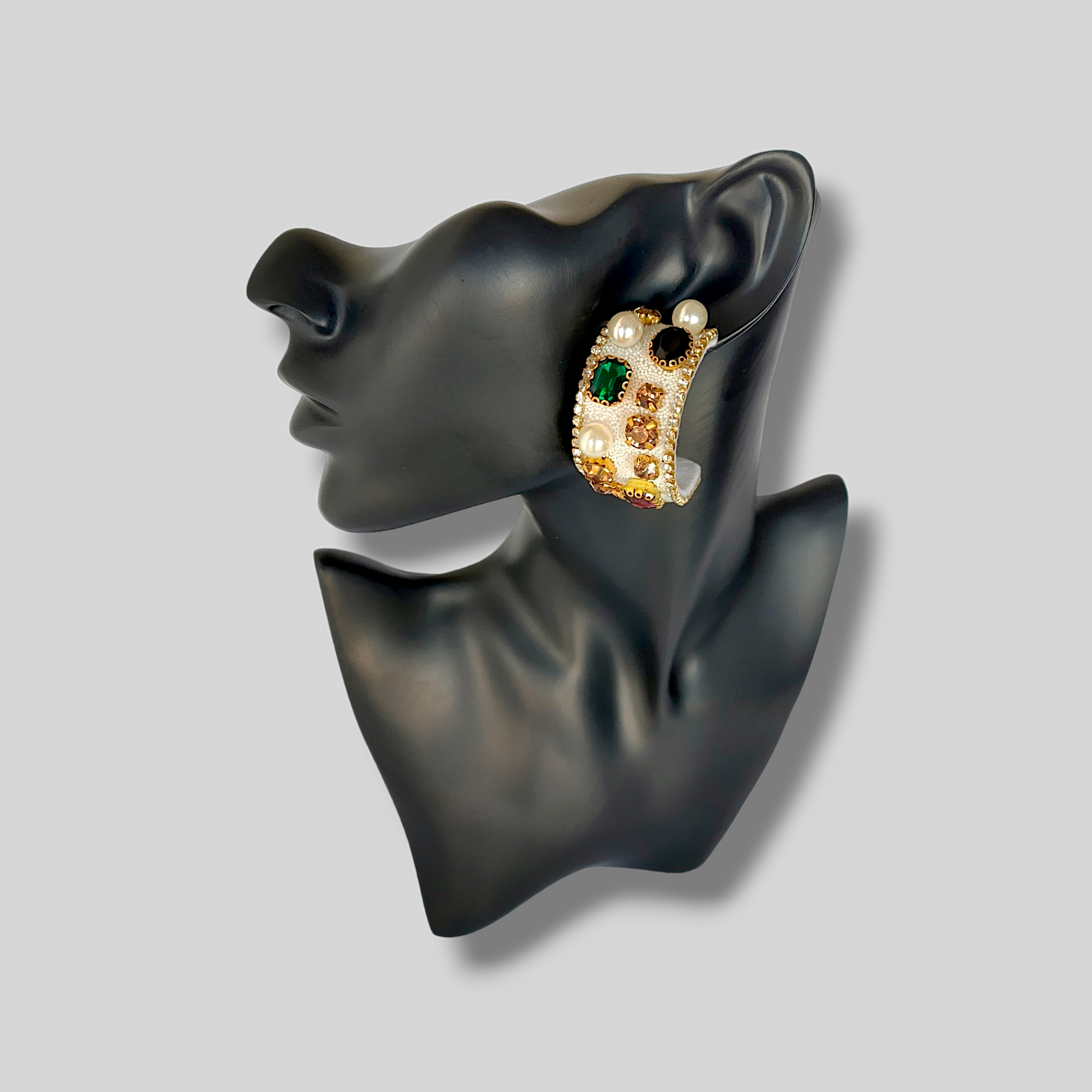 This uniquely C-shaped made earring will help you make that bold statement any day. It is sure to give that perfect vintage look with its mix of rhinestone and pearl embellishment.